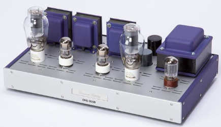 The DHP-300B is an all-tube power amplifier featuring a pair of the WEC 300B type output tube driven by a 6SN7 and custom made Interstag transformer. All transformer is custom-made (made in Japan). Rectification is handled by a 5AR4/GZ34. The directly heated triode amp outputs 20 watts/8ohm.