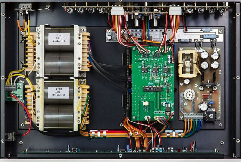 Advanced input circuitry and volume control circuitry are implemented with our proprietary Direct Signal Path Technology (DSPT). This combines with our low-distortion amplification section using the 12AU7(ECC82) in cascode configuration to produce extremely fast transient response and clarity. This preamp is the closest thing to using no preamp at all, yet it provides sufficient gain to give music the drive and authority which no passive device can equal. Extraordinary resolution and immediacy from the shortest circuit path possible, implemented with our unique Direct Signal Path Technology. Unparalleled transparency and excellent channel separation from our proprietary minimalist dual electronic volume control. Lightning-fast transient response and crystalline clarity from our perfectionist low-distortion amplification section using the 12AU7(ECC82) in cascode configuration. Perfectionist simplified and optimized circuitry allows the sound of the tubes themselves to emerge with unparalleled transparency―the meaning of the proverbial “straight wire with gain.” Quite simply, the closest thing to no preamp at all, but with drive and authority which no passive can approach
